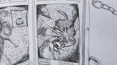 En partant d’un fragment découpé de la référence La Tentation de saint Antoine (vers 1470-1475) de Martin Schongauer, les élèves devaient trouver comment le camoufler au milieu de leur dessin. Contrainte : Ne pas intervenir sur le fragment !