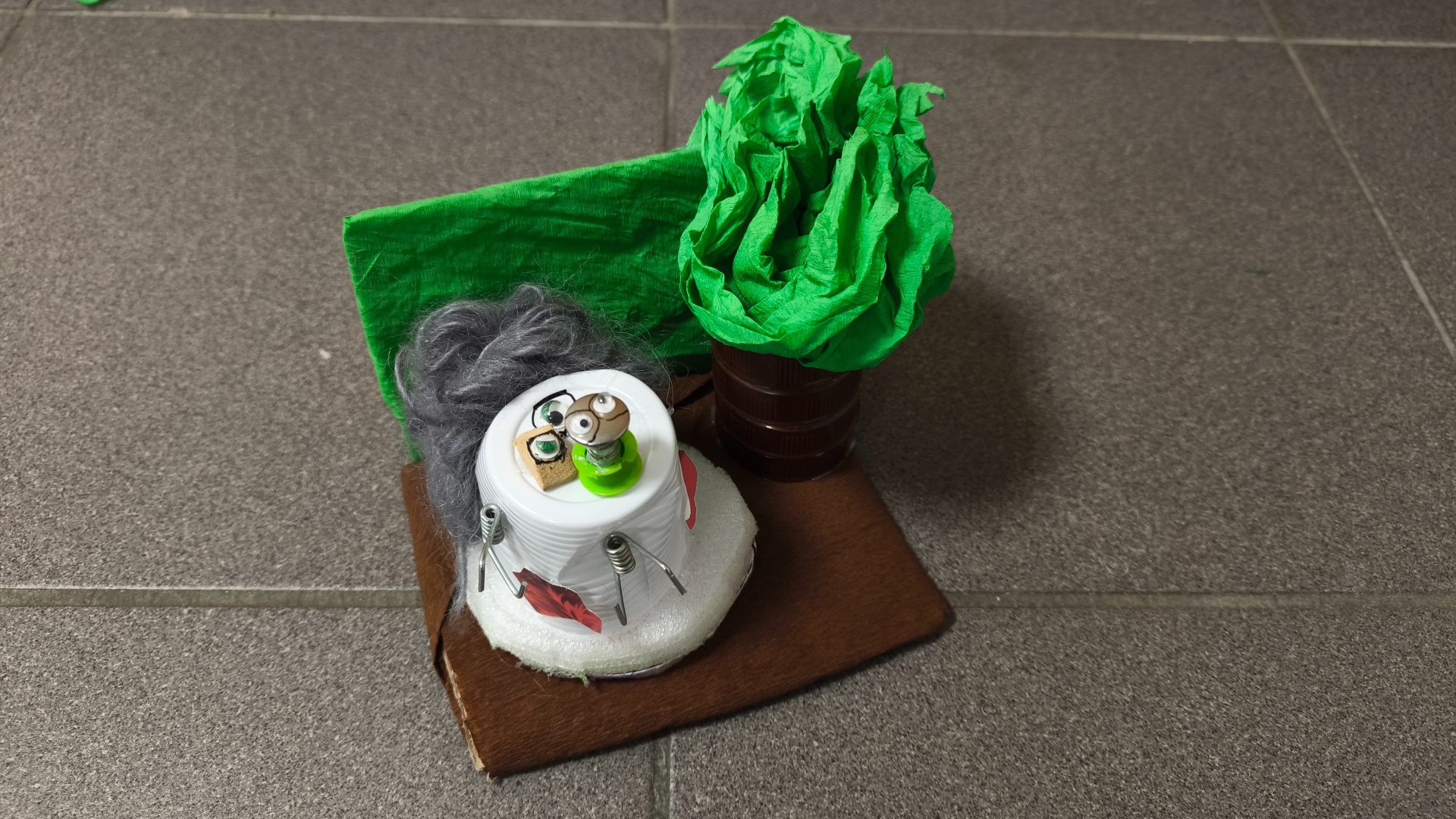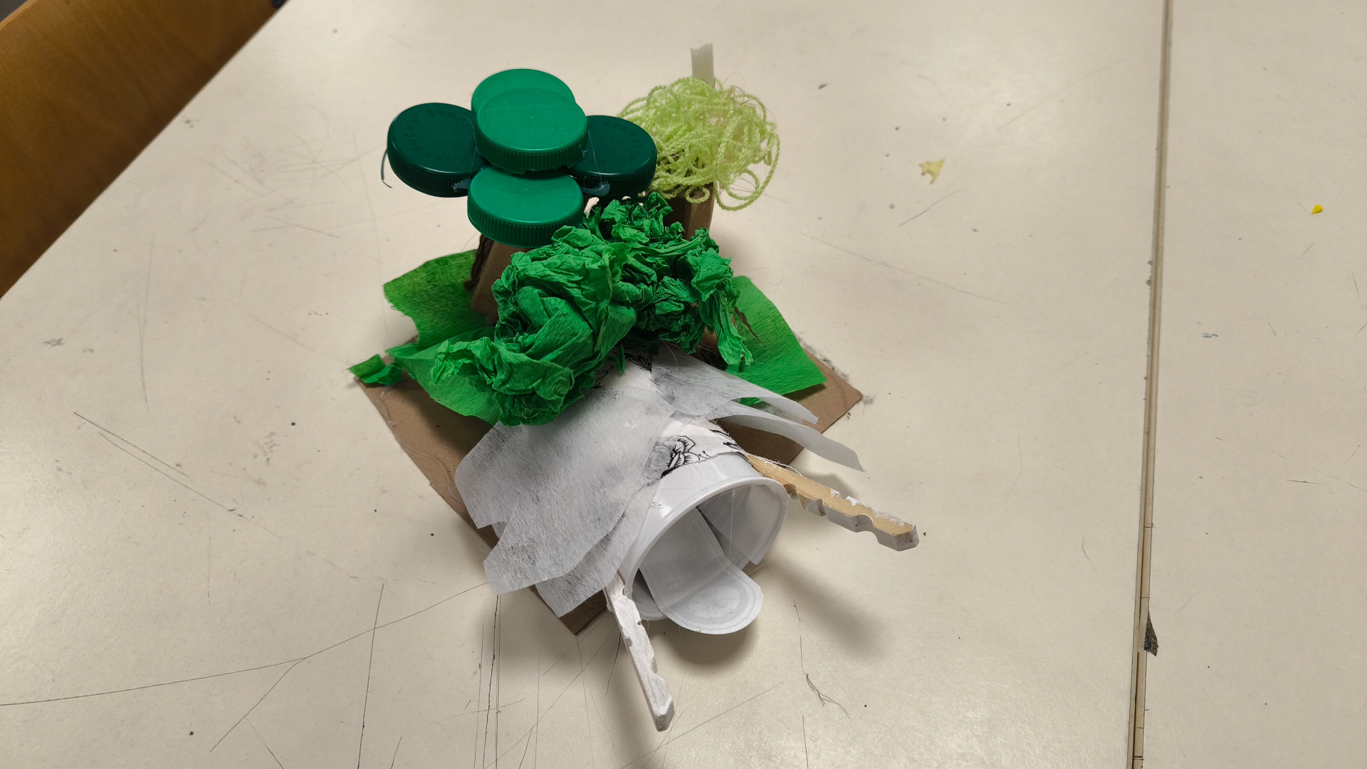Puis, en tant que chercheurs expérimentés, ils devaient représenter l’environnement de leur insecte et l’intégrer dedans. Contrainte : Cet environnement devait tenir sur un support de 15x15 cm maximum.