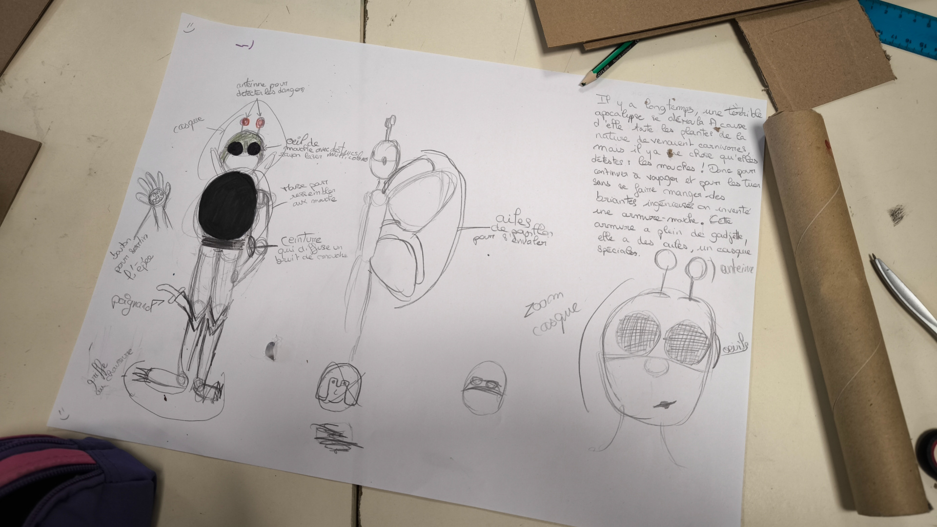 Dans un monde fantastique, une apocalypse s’est déroulée et la planète n’est plus comme avant. En tant que survivants, les 5e devaient créer un costume qui allie esthétique, fonction et innovation.