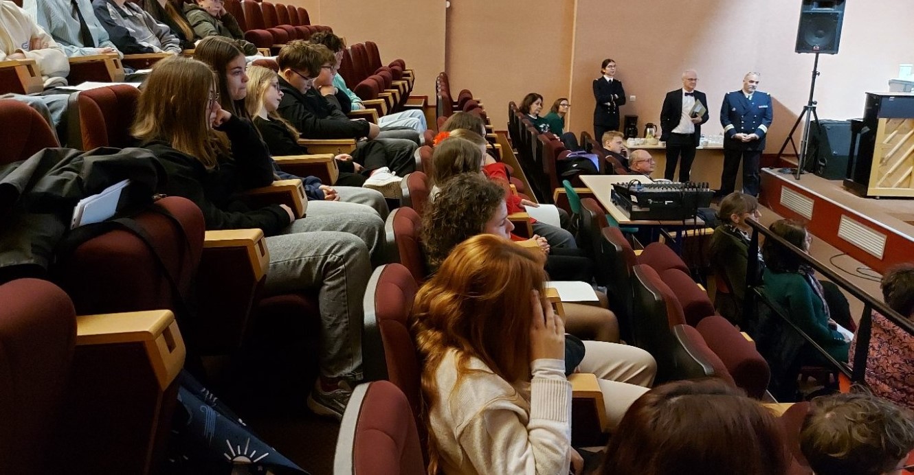 Jeudi 18 décembre 2025 se sont réunis des représentants du rectorat, des armées, du lycée du Léon, de l’équipage de la FREMM Bretagne (dont la Capitaine de vaisseau Audrey Boutteville) avec des élèves de la classe défense du collège (représenté par M. Conan et Mme Ravaux).