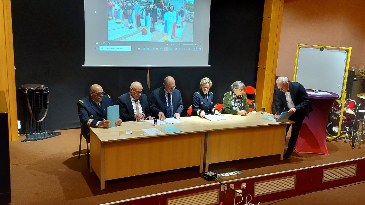 Ensemble, ils ont signé le renouvellement de la convention qui lie la FREMM Bretagne à notre classe défense, la FREMM étant notre unité marraine.