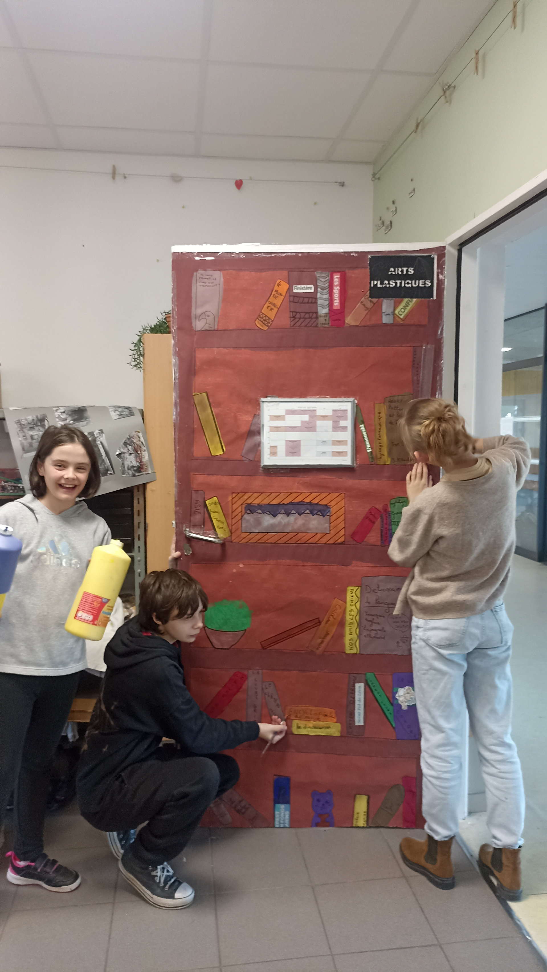 Chaque vendredi midi, une quinzaine d’élèves participent à l’atelier dessin. Avant Noël, ils se sont investis autour d’un projet collectif d’installation artistique en trompe-l’œil dans les couloirs du collège. Les élèves s’engagent dans une véritable démarche de création allant de la réflexion initiale à la réalisation finale des travaux. L’atelier dessin a permis d’explorer les notions de perception, d’espace et de point de vue ensemble ils ont aussi développé des compétences artistiques et collaboratives. Les installations ont pour objectif de créer des moments de surprise artistique et d’interpeller le regard des autres élèves au quotidien.
