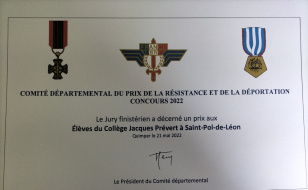 La classe Défense, lauréate du Concours National de la Résistance et de la Déportation.