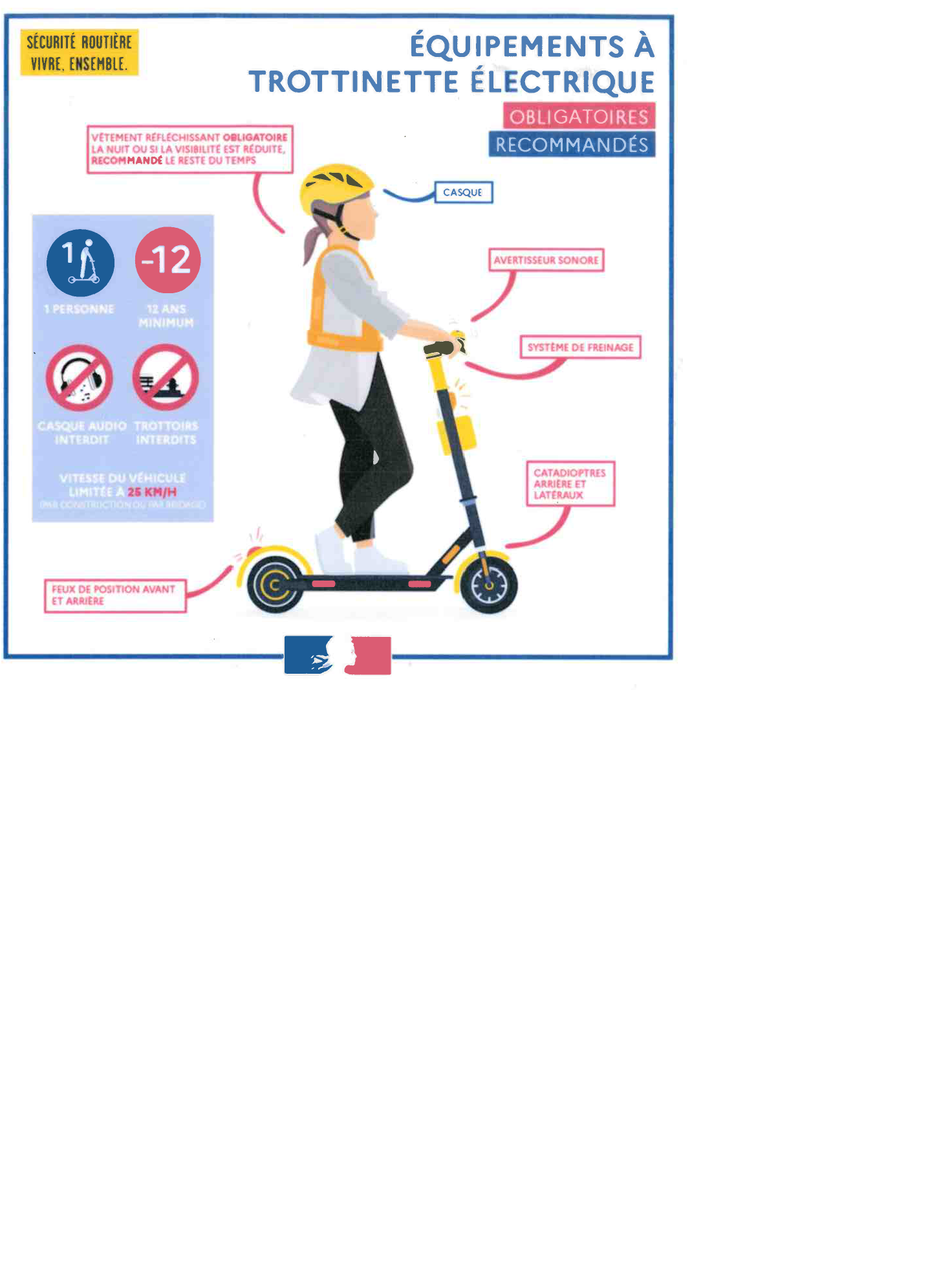 Cette sensibilisation à la sécurité à vélo nous semble d’autant plus importante qu’en ce mois ou les journées raccourcissent, il est important d’être visible sur la route et de voir. Toujours Vous trouverez ci-dessous un rappel des équipements obligatoires lorsque l’on circule en 2 roues.