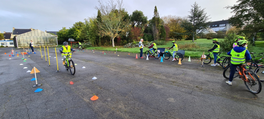 Puis un aspect pratique à travers un parcours de maniabilité et une petite promenade à vélo aux abords de l’établissement. Les élèves qui avaient apporté leur propre vélo ont pu bénéficié d’un contrôle de leur état avec un regard appuyé sur les organes de sécurité, et être conseillé pour l’entretien. Cette formation était encadrée par M Guéguéniat et son équipe de bénévoles du vélo club de Guipavas.