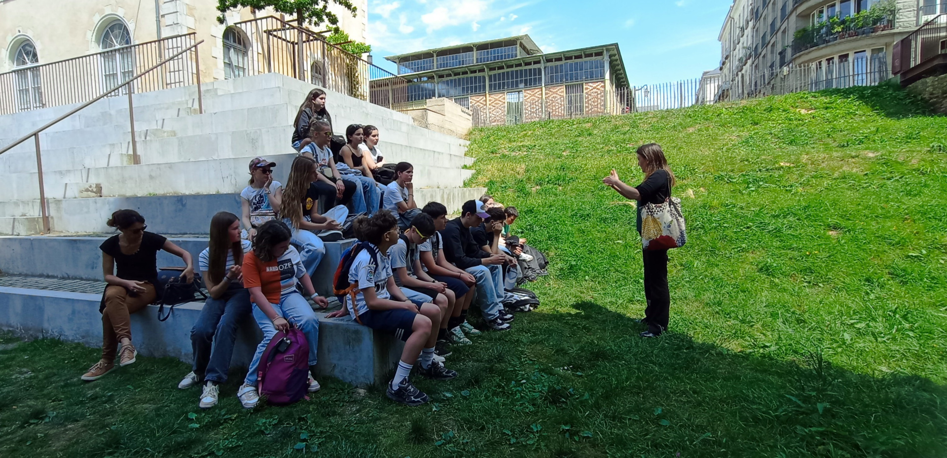Gant skeudenn ur gêr lec’h m’emañ ar brezhoneg war an dachenn foran, lec’h m’emañ an istor e pep korn eus ar straedoù o deus adkemeret ar skolidi an tren war-zu Montroulez gant plijadur.