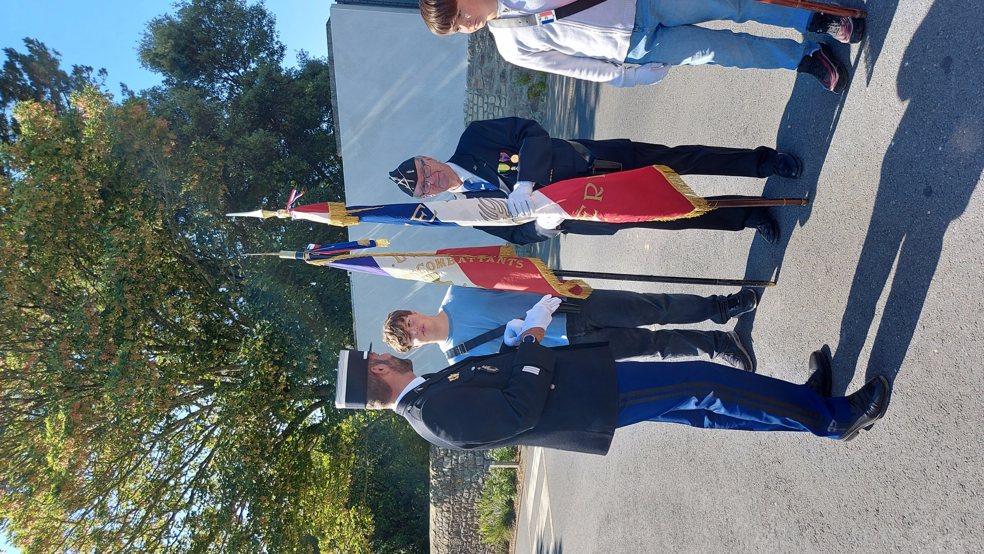 Raphaël a lu un passage de l’appel du général de Gaulle, Théo était porte drapeau, tandis que Yaëlle et Vincent étaient préposés au dépôt de gerbe.