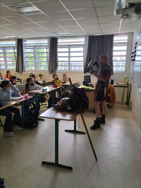 Vendredi 10 juin, un ancien élève de Mme Anthoine, M.Moulinais est venu nous rencontrer pour parler du légionnaire romain et de sa passion pour l’histoire . Il a participé à plusieurs reconstitutions historiques dans toute l’Europe et à des documentaires diffusés sur RMC Découvertes.